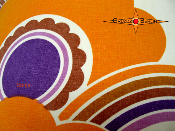 The pendant lamp SONJA with matching canopy and diffuser is made out of original fabric of the 70s, with the nice Pril flowers pattern.